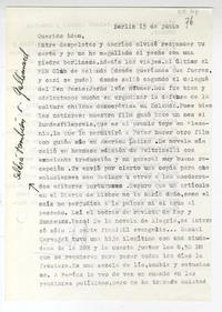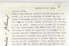 Berlin, Alemania [a] Antonio Avaria Carta, 1976 junio 15, [manuscrito] Antonio Skármeta.
