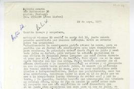 Portugal [a] Antonio Skarmeta Carta, 1977 mayo 22, [manuscrito] Antonio Avaria.