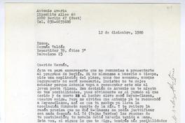 Berlin, Alemania [a] Hernán Valdés, Barcelona, España Carta, 1980 diciembre 12, [manuscrito] Antonio Avaria.