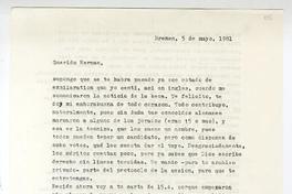 Bremen, Alemania [a] Hernán Valdés, Barcelona, España Carta, 1981 mayo 05, [manuscrito] Antonio Avaria.