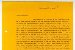 Barcelona, España [a] Antonio Avaría, Berlin Carta, 1981 abril 15, [manuscrito] Hernán Valdés.