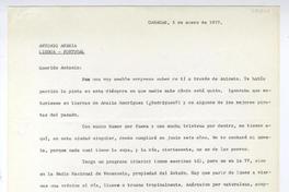 Caracas, Venezuela [a] Antonio Avaría, Lisboa, Portugal Carta, 1977 enero 5, [manuscrito] Mahfud Massis.
