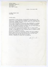 Oxford [a] Mario Vargas Llosa, Cambridge Carta, 1978 abril 12, [manuscrito] Antonio Avaria.
