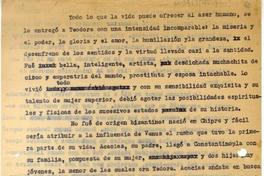 Fragmento de un texto en el que menciona la vida de Teodora en torno al moizaico bizantino de Justiniano y Teodora de San Vital.