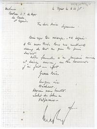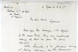 Le tignet, Francia [a] Suzanne Bertrand, Francia Carta, 1975 diciembre 6, [manuscrito]. 1 hoja; 28 x 21 cm. .