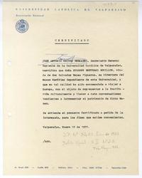 Valparaíso, Chile [a] Suzanne Bertrand Bouillon Certificado, 18 de enero de 1977, [manuscrito] Universidad Católica de Valparaíso.