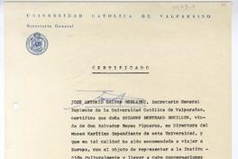 Materias: Universidad Católica de Valparaíso (Chile) - Bertrand, Suzanne - Correspondencia - Manuscritos chilenos - Reyes, Salvador - Certificados - Autores chilenos