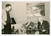 Fernando Quilodrán y Volodia Teitelboim [fotografía]. Santiago, Chile ; [Producción no identificada], cerca de 2000. 1 fotografía : Monocromo blanco y negro, 17,1 x 11,9 cm. .