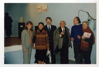 Fernando Quilodrán junto a Elisa Figueroa, Susana González, Daniel Dolmocen, Gabriel Uribarri y Verónica Rojas en la inauguración de la exposición "Gabriela, la mujer".