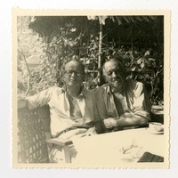 Salvador Reyes y Blaise Cendrars [Fotografía]. Paris, Francia ; [Producción no identificada], cerca de 1950. 1 fotografía : Monocromo en blanco y negro, 8,5 x 8,5 cm. .
