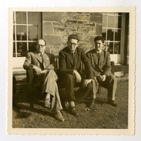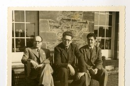Salvador Reyes con Luis Oyarzún y Jean Follain [Fotografía]. Edimburgo, Escocia ; [Producción no identificada], cerca de 1947. 1 fotografía : Monocromo en blanco y negro, 8,5 x 8,5 cm. .