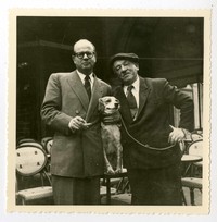 Salvador Reyes y Blaise Cendrars [Fotografía]. Montparnasse, Paris ; [Producción no identificada], cerca de 1957. 1 fotografía : Monocromo en blanco y negro, 8,5 x 8,5 cm. .