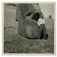Salvador Reyes [Fotografía] [Isla de Pascua] ; [Producción no identificada], cerca de 1957. 1 fotografía : Monocromo en blanco y negro, 8,5 x 8,5 cm. .