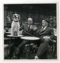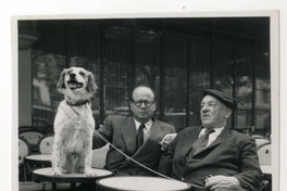 Salvador Reyes y Blaise Cendrars [Fotografía]. Montparnasse, Francia ; [Producción no identificada], cerca de 1957. 1 fotografía : Monocromo en blanco y negro, 5,5 x 6 cm. .