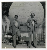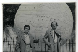 Salvador Reyes y Luis Oyarzún [Fotografía]. Swanage, Inglaterra ; [Producción no identificada], 1949. 1 fotografía : Monocromo en blanco y negro, 5,5 x 5,5 cm. .