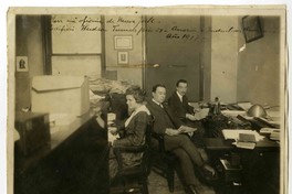 Alberto Ried junto a otras personas en su oficina en Nueva York en el edificio Hudson Tunnel piso.28 "América e Industrias Americanas".