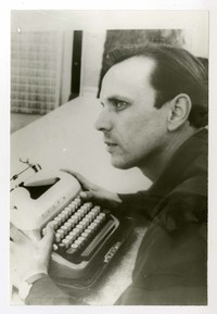 Luis Rivano [Fotografía]. [Santiago, Chile] ; [Producción no identificada], cerca de 1960. 1 fotografía : Monocromo en blanco y negro ; 17,8 x 23,8 cm. .