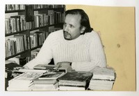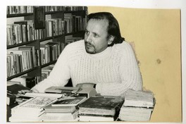 Luis Rivano [fotografía]. [Santiago, Chile] ; [Producción no identificada], cerca de 1977. 1 fotografía : Monocromo en blanco y negro sobre cartón; 11 x 16 cm. .