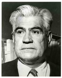 Manuel Rojas [Fotografía]. [Santiago, Chile] ; [Producción no identificada], 1957. 1 fotografía : Monocromo en blanco y negro, 20 x 25,5 cm. .