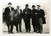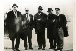 Manuel Rojas junto al Doctor San Martín, Pablo Neruda, Fernando Alegría y Gonzalo Rojas.