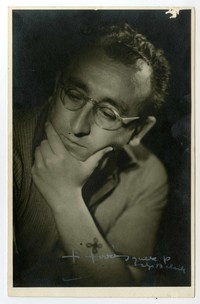 Andrés Sabella [Fotografía] / Tito Vásquez. [Santiago, Chile] ; [Tito Vásquez], 19 de enero 1943. 1 fotografía : Monocromo blanco y negro, papel brillante ; 10,5 x 17 cm. .
