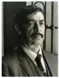 Joel Sánchez [Fotografía]. [Santiago, Chile] ; [Producción no identificada], cerca de 1990. 1 fotografía : Monocromo blanco y negro, papel brillante ; 18 x 24 cm. .