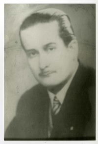 Carlos Sander [Fotografía]. [Santiago, Chile] ; [Producción no identificada], cerca de 1950. 1 fotografía : Monocromo blanco y negro, papel brillante ; 12 x 17,8 cm. .