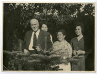 Fernando Santiván con sus hijas [Fotografía]. [Santiago, Chile] ; [Producción no identificada], 1963. 1 fotografía : Monocromo blanco y negro, 17,5 x 23,5 cm. .