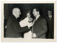 Fernando Santiván en el Teatro Cervantes [Fotografía]. [Valdivia, Chile] ; [Producción no identificada], cerca de 1963. 1 fotografía : Monocromo blanco y negro, 18 x 24 cm. .