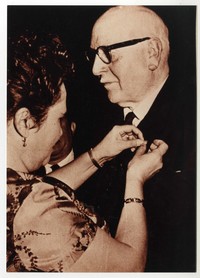 Fernando Santiván recibiendo la insignia de Hijo Ilustre de la Ilustre Municipalidad de Valdivia.