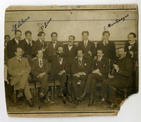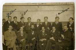 Fernando Santiván junto a otros escritores [Fotografía]. [Santiago, Chile] ; [Producción no identificada], 1918. 1 fotografía : Sepia ; 13 x 15 cm. .
