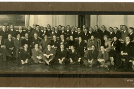 Homenaje a Augusto d'Halmar [Fotografía]. [Santiago, Chile] ; [Producción no identificada], cerca de 1935. 1 fotografía : Monocromo blanco y negro, 9 x 24,5 cm. sobre cartón : 13,5 x 28 cm. .