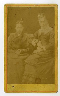 Rufina y Clarisa Puga [Fotografía]. [Santiago, Chile] ; [Producción no identificada], julio de 1879. 1 fotografía : Monocromo blanco y negro, 10,7 x 6,3 cm. .