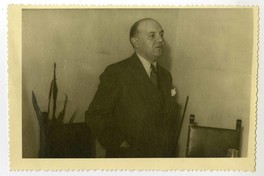 Raúl Silva Castro [Fotografía]. [Santiago, Chile] ; [Producción no identificada], cerca de 1950. 1 fotografía : Monocromo blanco y negro, 11,5 x 17,5 cm. .