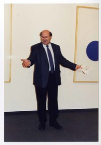 Antonio Skarmeta, durante la inauguración de una exposición de arte.
