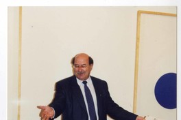 Antonio Skarmeta [Fotografía]. [Santiago, Chile] ; [Producción no identificada], cerca de 2000. 1 fotografía : Color, 10 x 9,5 cm. .