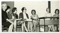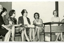 Entrega de premios del Concurso de cuentos escritos por niños, realizado en el Teatro La Comedia. Conforman el jurado de izquierda a derecha: Alicia Morel, Monica Echeverría Pepita Turina, Maité Allamand, Estela González, Esther Huneeus y Gabriela Yañez (Organización internacional para el libro juvenil, IBBY).