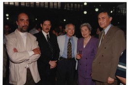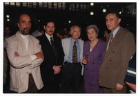 Raúl Zurita en una actividad en la "Estacion Mapocho", junto a Marta Cruz-Coke, Mario Andrés Salazar, entre otros asistentes.