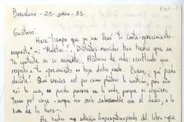 Barcelona, España [a] Gustavo Mujica Carta, 1985 junio 25, [manuscrito] Bruno Montané.