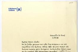 Joinville le Pont, Francia [a] Mauricio Redoles Carta, 1986 octubre 4, [manuscrito] Gustavo Mujica.