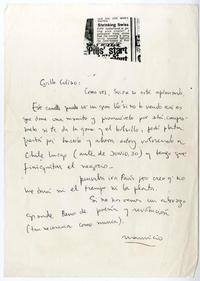 1 carta : Archivo del Escritor Biblioteca Nacional, Avenida Libertador Bernardo O'Higgins, Santiago, Chile.