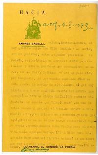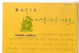 Antofagasta, Chile [a] Hugo Montes Carta, 1973 febrero 9, [manuscrito] Andrés Sabella.