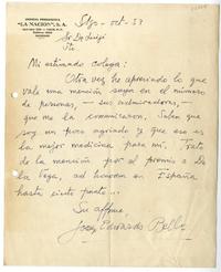 Santiago, Chile [a] Juan de Luigi Rossi Carta, 1953 octubre, [manuscrito] Joaquín Edwards Bello.