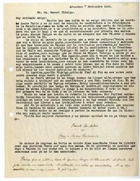 Arcachon, Francia [a] Manuel Hidalgo Carta, 1931 septiembre 7, [manuscrito] / Vicente Huidobro. 1 hoja : 27 x 21 cm. .