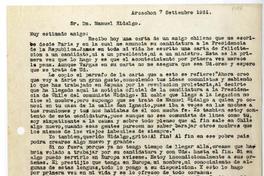 Arcachon, Francia [a] Manuel Hidalgo Carta, 1931 septiembre 7, [manuscrito] Vicente Huidobro.