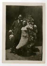 Óscar Castro y Ernestina Zúñiga [fotografía]. Pichilemu, Chile : [Producción no identificada], 1938. 1 fotografía : Monocromo blanco y negro, 6 x 9 cm. .