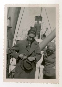 Oscar Castro y Ernestina Zúñiga [fotografía]. Puerto Montt, Chile : [Foto Del Castillo], 1943. 1 fotografía : Monocromo banco y negro, 6 x 9 cm. .