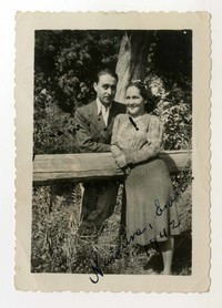 Oscar Castro y Ernestina Zúñiga [fotografía]. Nancura, Chile : [Producción no identificada], 1942. 1 fotografía : Monocromo blanco y negro, 6 x 9 cm. .