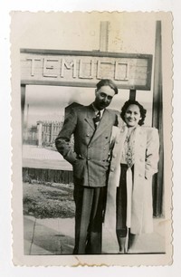 Oscar Castro y Ernestina Zúñiga [fotografía]. Temuco, Chile [Foto Del Castillo], 1943. 1 fotografía : Monocromo blanco y negro, 6 x 9 cm. .