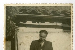 Oscar Castro con su ahijada [fotografía]. Rancagua, Chile : 18 de noviembre [cerca de 1945] ; 1 fotografía : Monocromo en blanco y negro, 11,5 x 15 cm. .
